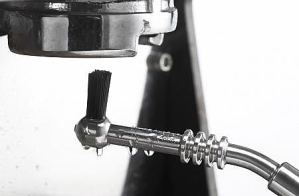 Der Kleine, Runde, neben ihrer Espressomaschine. Aus robustem Hartplastik, für die schnelle Reinigung in der Spühlmaschine, mit den Details wie die Großen: Abschlagbalken schlaggedämpft und aus lebensmittelechtem Silikon, der Boden mit standfestem Gummipuffer. In den Farben schwarz, rot, grau, passend zu den meisten Maschinen. Wie bei allen unseren Abschlagbehältern ist der Stab herausnehmbar, so dass man den Behälter innen auch einfach reinigen kann.
